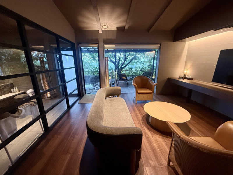ととのい椅子でぼけーっと過ごし、こんな別荘がほしいなと思いました😊