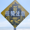 吊り橋は車一台ごとに通行という怖い看板を見ながら渡り