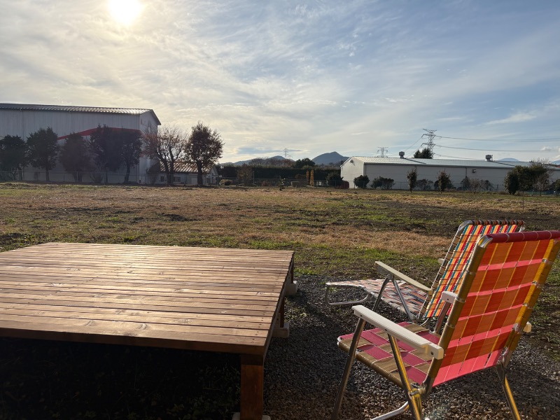 外気浴スペースは写真の通り、景色は思いきり工場?の建物合ってそこまでだけれども、キャンプ場じゃないんだしそこまで要求するのは酷かな。