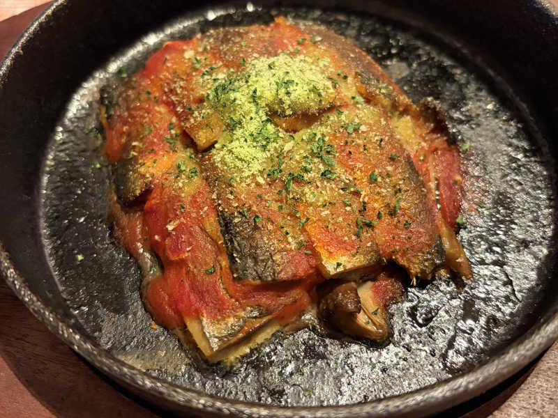 前菜エリアにあったメニュー。これはメインでも良さげな量と味。