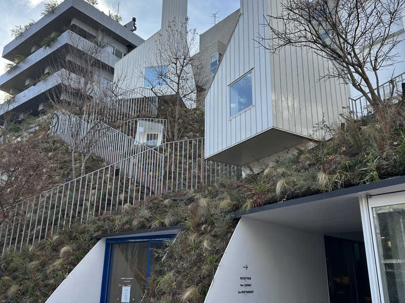 もともと300年前から続く旅館を40年前にホテル業に開業したが、一時廃業され近年、リノベーションされてアート建築に一新されおしゃれなホテルとして生まれ変わったとのこと。