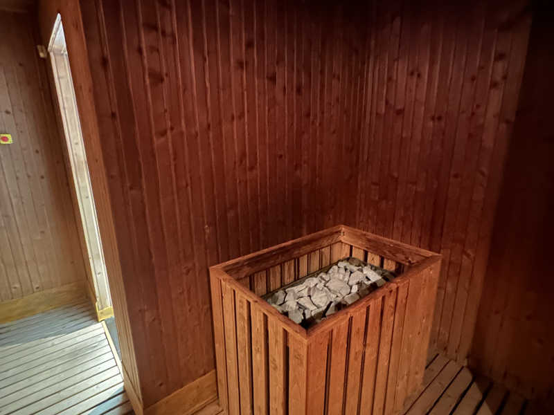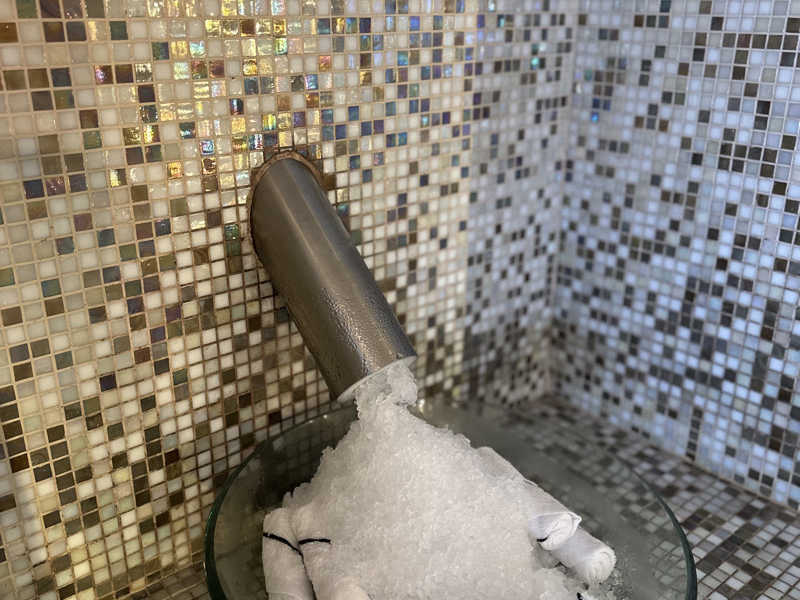 肝心のサウナは真ん中に岩塩の塊、壁も岩塩で発汗デトックス効果がすごい