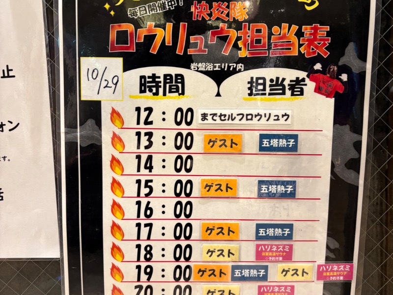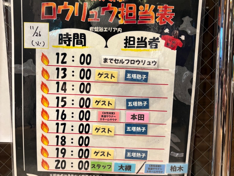 ゆげ蔵は、天井が低いので、中腰でタオル回してた熱子さんカッコよかった✨