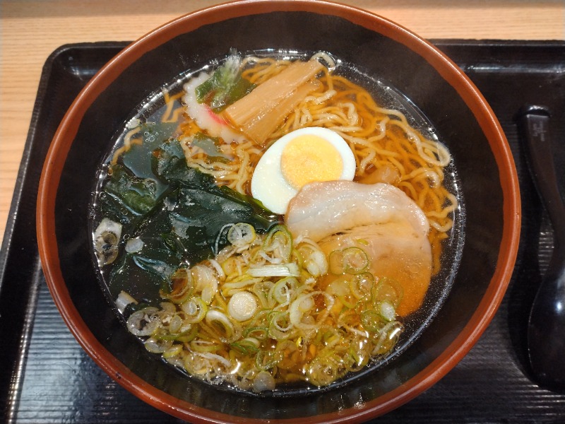 朝ラーして帰ろうと稲荷町に行ったら、あれ?やってない。仕方なく、富士そばでラーメン。
