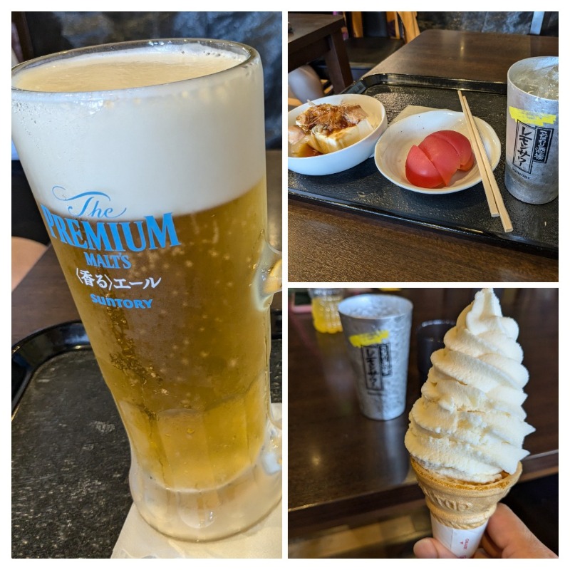 お風呂の後は、食堂でビールで水分補給しつつ、