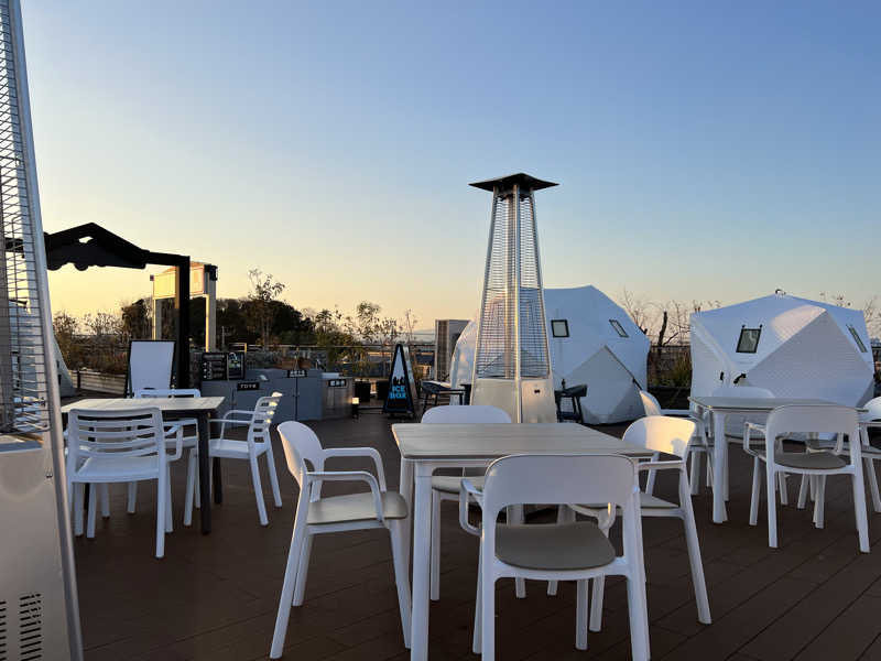 ひとまず身体を洗ったら、そのまま館内着に着替えて屋上のテントサウナへ。
