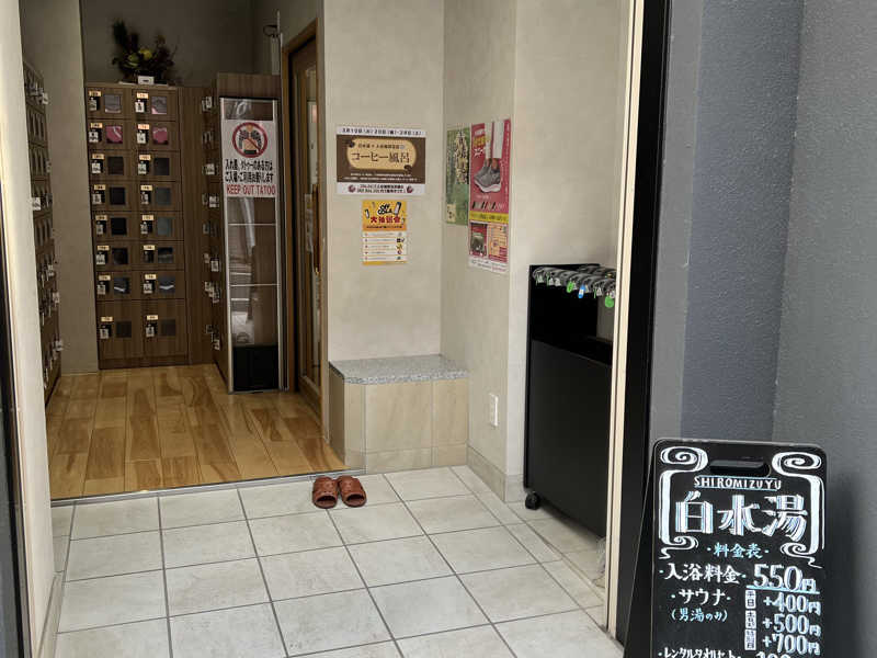 本日は毎月恒例の深夜出勤があるため、仮眠をとる前にホームの白水湯へ。