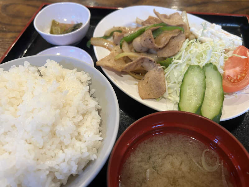定番の生姜焼きですが、濃過ぎずあっさり目。 食べやすくて野菜も摂れる。 +120円でご飯大盛りも可。