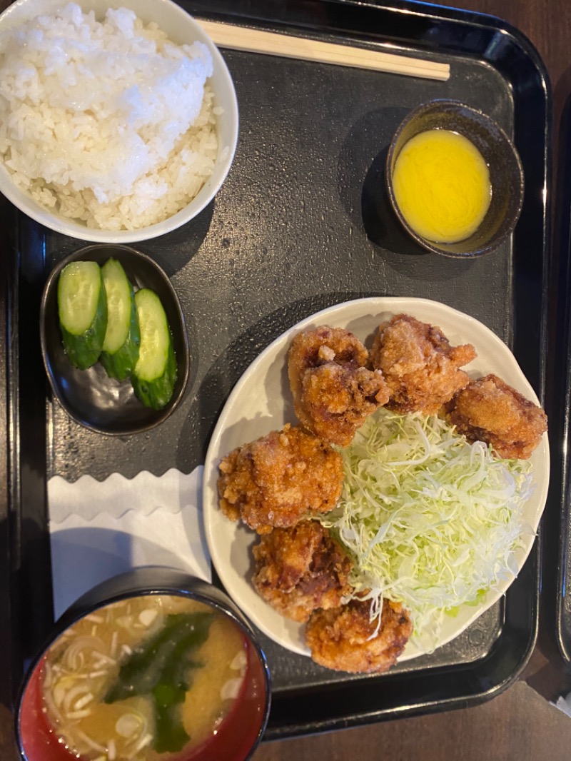 着いたらまずはお昼ご飯🍚新年1発目はやっぱり唐揚げ噴火定食🌋