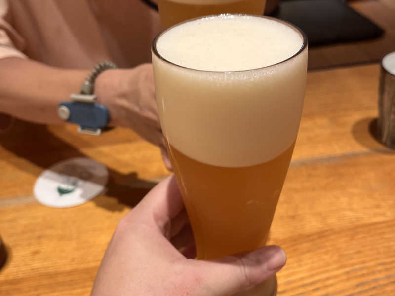 サウナ後はビアガーデンで美味いビールを喉に流し込む