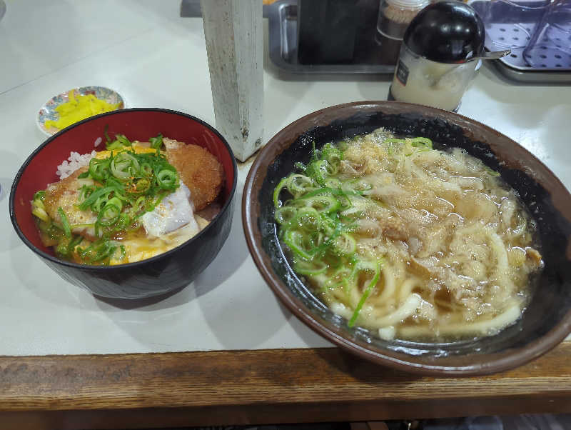 かすうどんにもにんにく入れるんですね、しかも合う!