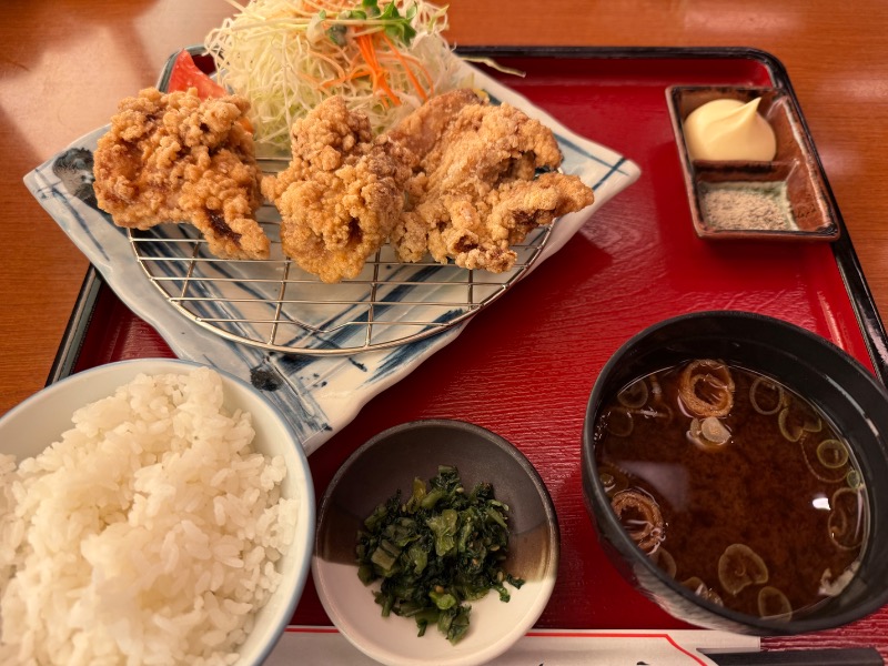 鶏唐あげ、ごはんセット (小盛り)。