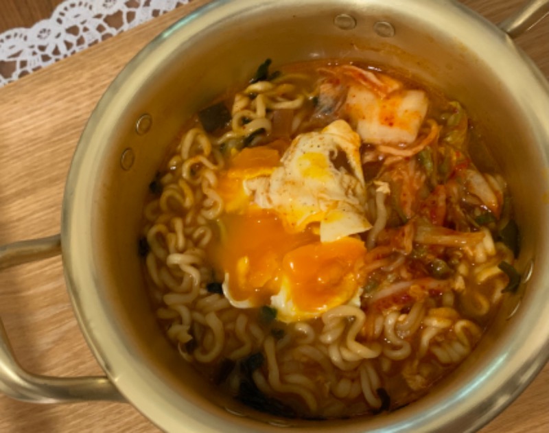 新大久保に行くと韓国ごはんが食べたくなるーおうちに帰ってノグリラーメンをいただく。前回ルビーさんの帰りに韓国市場で買った1人用ラーメン鍋がムード♡