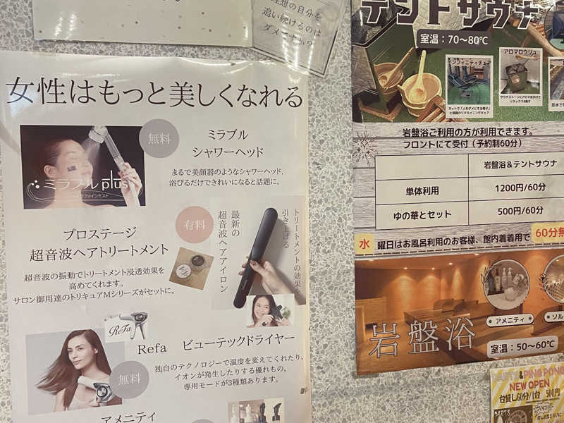 レンタルで超音波トリートメントも試せて素晴らしい…(1回1,000円)湯上がりも可愛くいたい乙女に寄り添ってくれてますな…