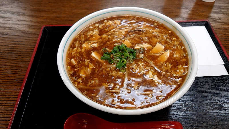 芝居休憩中にスーパーBIGチョコ、その後に黒酢とろり麺を食べました🍜初めて追い酢をしましたが、これがまたクセになる味で美味いです👍