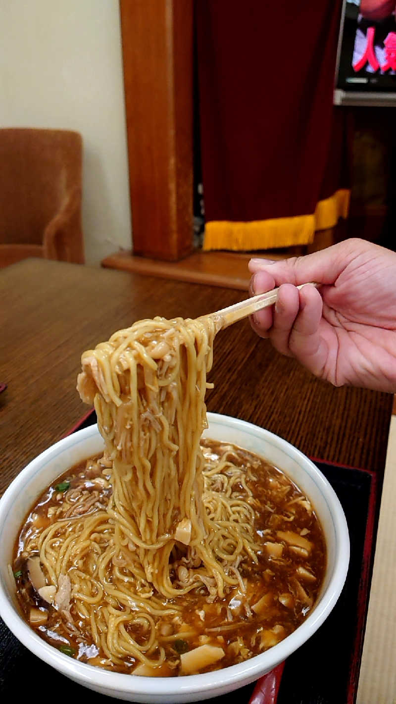 そして食事は「黒酢とろり麺大盛」🍜調べたら1ヶ月ぶりでした✨️角度を変えて箸上げ挑戦🤩
