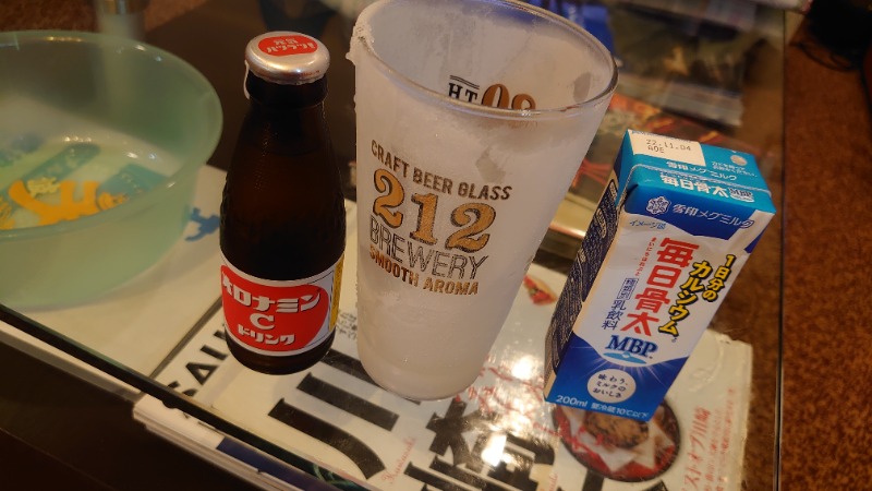 湯上がりはもちろんオロミル、ピンク女将さんも元気元気で満足の小松湯でした😆