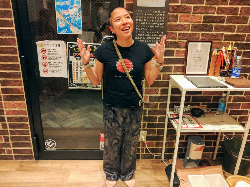 移動しながらサウナ室の熱気のコントロールをしていたが、構造上の問題で仕方がないが奥側のストーブと座席が近いところが扇ぎつらいのが、可哀想だった。