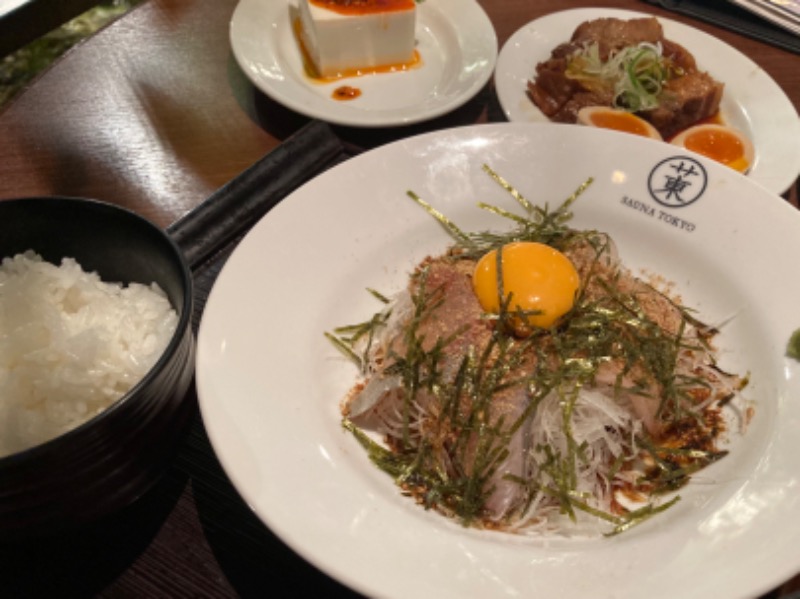 その後、手酌蒸気(セルフロウリュ)→蒸喜乱舞→蒸喜乱舞と合計5セットして地下の食事処に。ラーメンしかないと思ってたんだけど色々種類あるのね。どれも美味しそうだったけど、友達がめっちゃ頼みやがったw