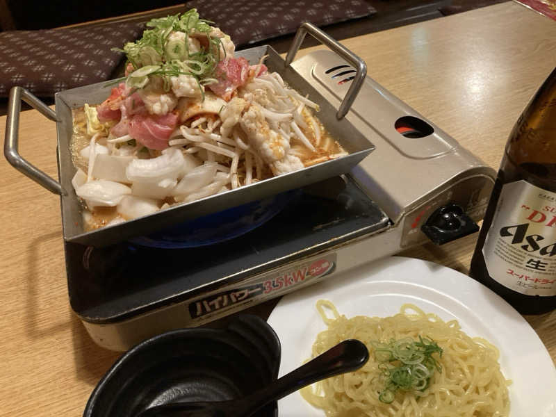 レストランに移動し、これまたパワーアップした(にんにくマシマシ?)名物「ちりとり鍋」をにんにくなしで頂いてると(こっちは明日、仕事やねん)。何やら賑やか。