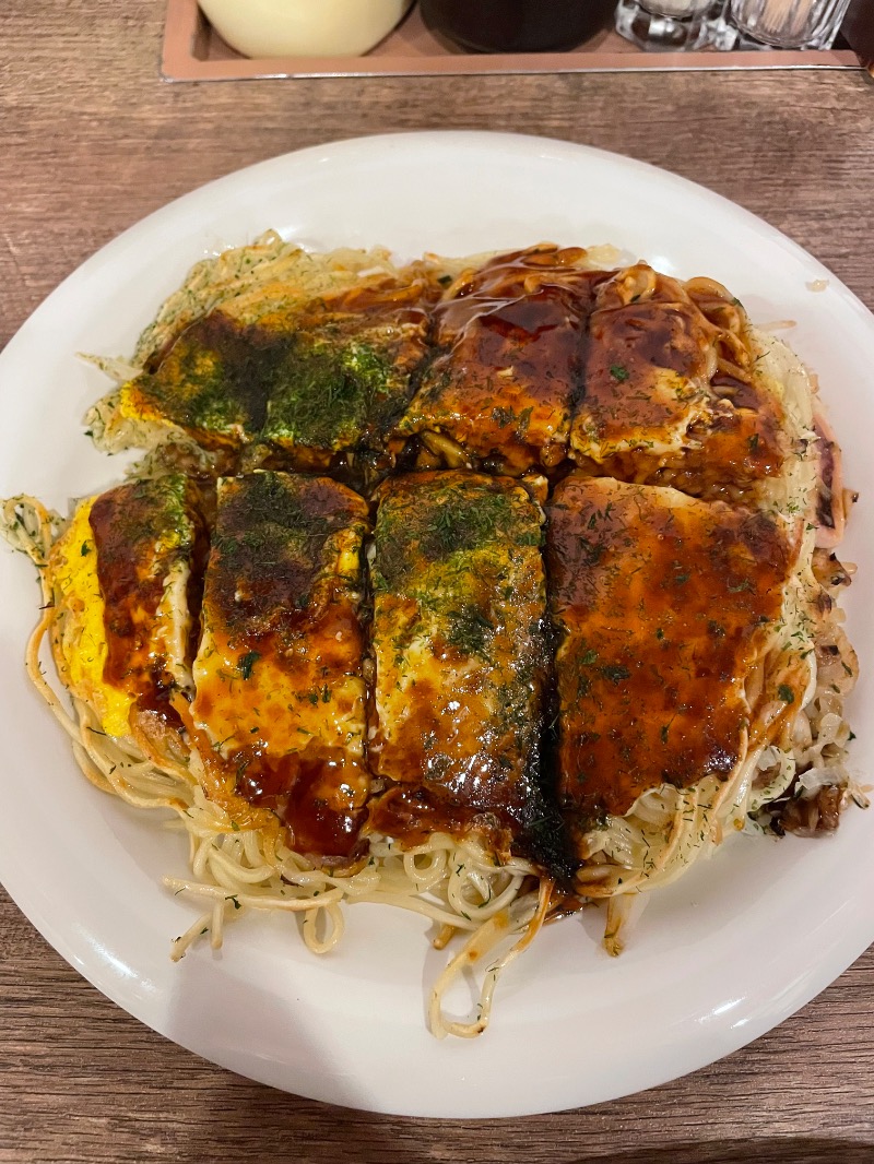 サ飯は広島駅ekieの「みっちゃん」でエビ、イカ、牡蠣、そば入りのお好み焼きをいただいた!