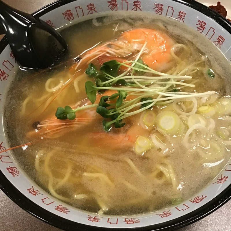 あがったら、遅めの食事。冬のおすすめメニューから何かと思案。残念ながら鍋焼きうどんが売り切れだったので、えび塩ならっこラーメンを頂く。