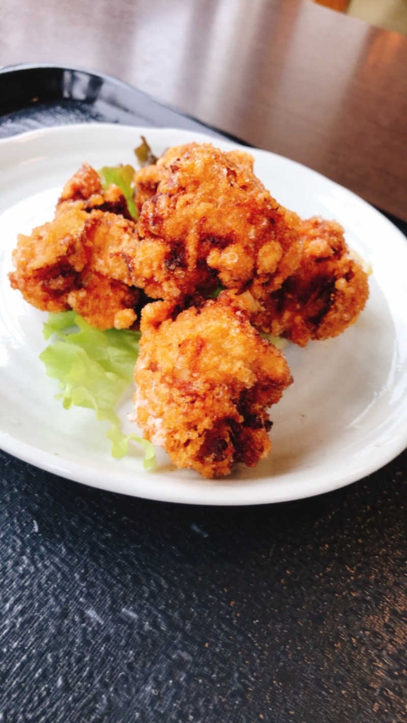 食堂でレモンサワー一杯と、ふろ国行ったら食べようと決めていた唐揚げで最高の締めでした😍