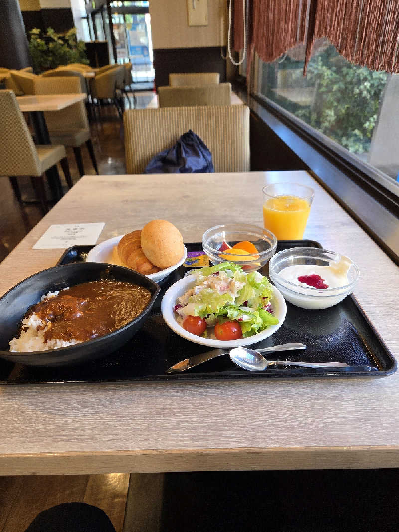 サ飯は、ドーミーインEXPRESS仙台広瀬通に戻り朝食で牛タンカレー