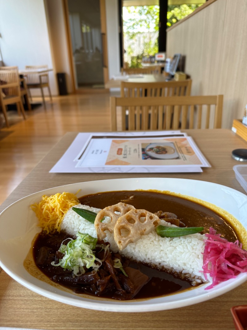 その後温浴も絡めながらゆったり合計3セットしてから食堂へ。名物どてカレーを注文。どて煮とカレーがご飯の土手で分かれててギャグっぽい感じもするけど味は大満足✨美味しかったぁ😊