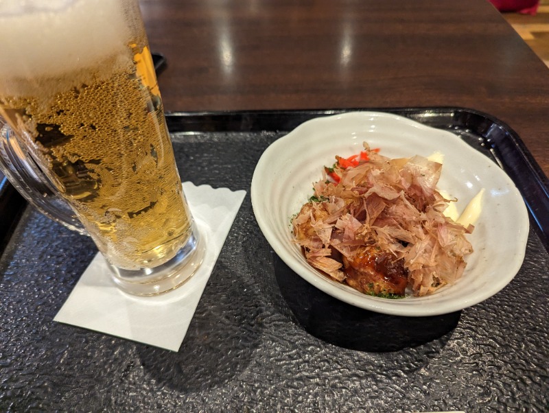 つまみはさつま揚げにたこ焼き、コロッケ。