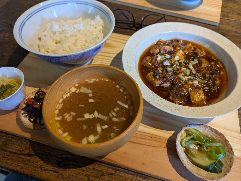 お好み焼きは食べれないが期間限定の麻婆豆腐定食とビールより美味いとある宇宙ビール(ノンアル)で大満足😋
