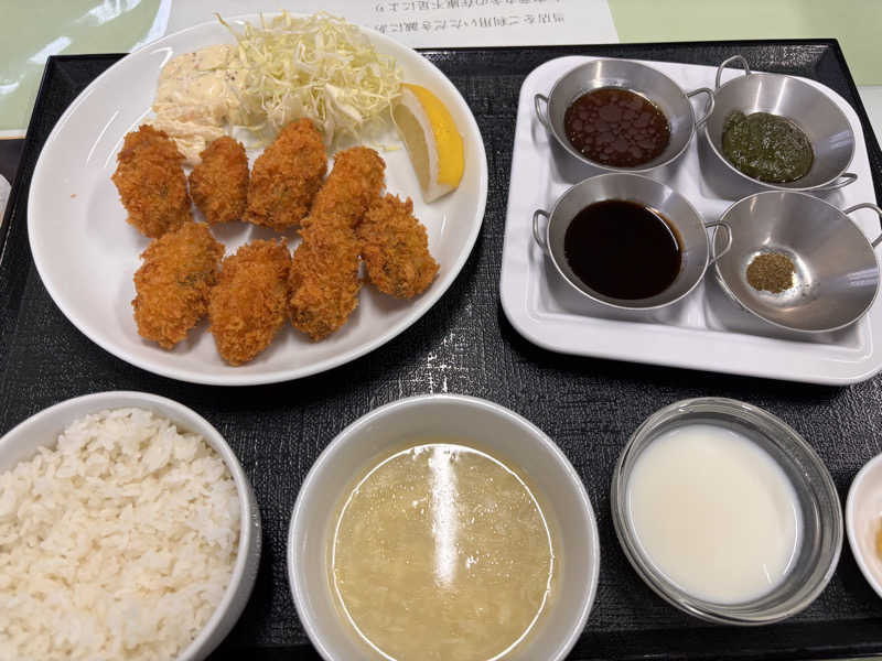 知内のかき小屋のカキフライ定食がやばいとのウワサがあったので、サ飯を求めて知内まで♨️ 安定の安さでほぼ貸切てした。 外気が秋の香りになってきました。 雪虫も見かけたのでそろそろですね❄️