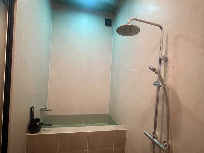 サウナはこの日110℃ほど。ベストは2人ですね。4人まで入れる仕様ですが。広くないのでロウリュウもパンチが効いてます、、刺激が欲しい人にはたまらんのでは。