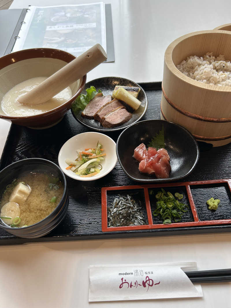 レストラン、食事。とろろ御膳やや割高なるも美味。開店からクローズまで通し営業、マイペースでサウナ楽しめて助かる。女性スタッフ親切で癒される。