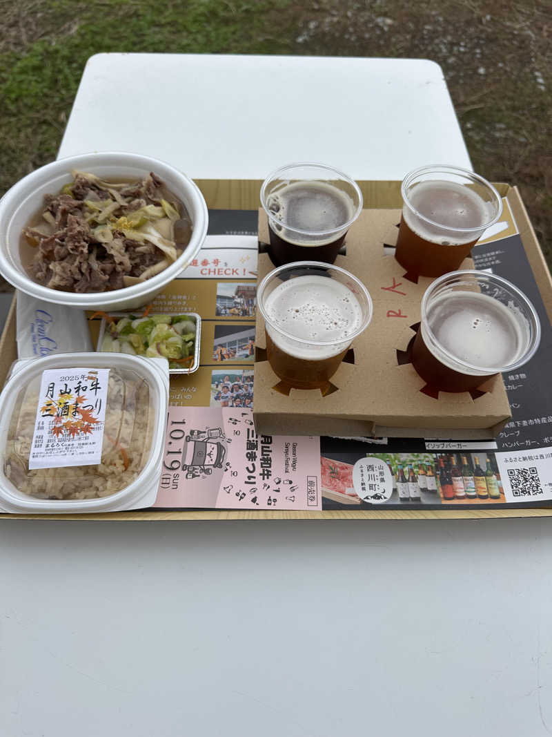 西川町の和牛を使用した芋煮と地ビール4種飲み比べもめちゃめちゃ美味かった ゲプ