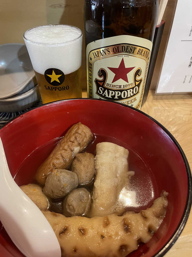 少し先におでんの看板あったんでテキトー入店。おでん5点盛り頼んだら全部ねりモンだされたという。。🍢