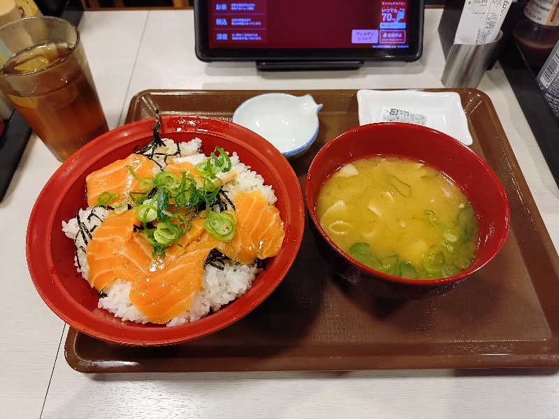 昨日より、ゆっくり、たっぷり、サウナを楽しんで、昨日食べ損ねた、サーモン丼食べた。