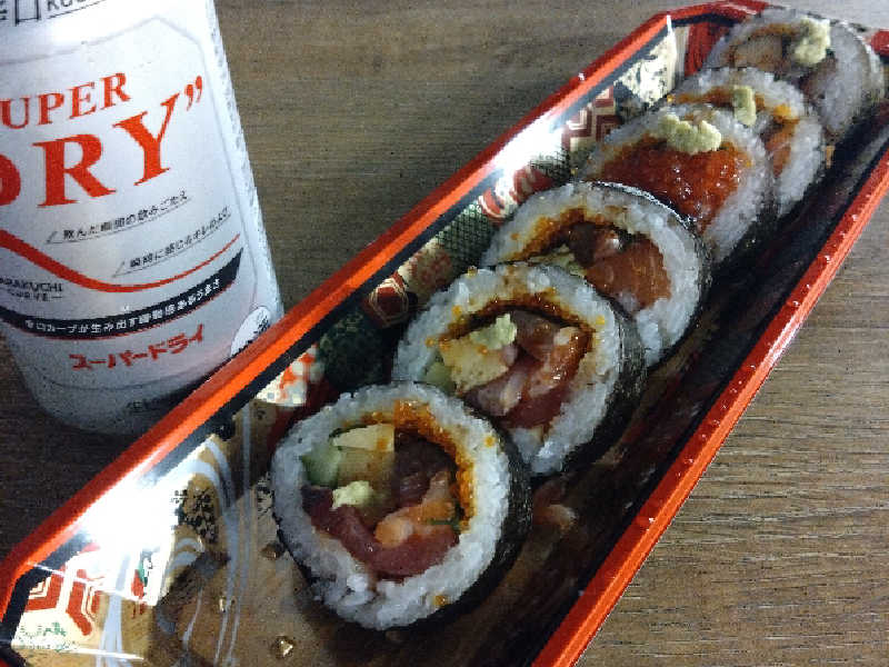 その後スーパーの寿司を買いスタンド席で腹ごしらえ。