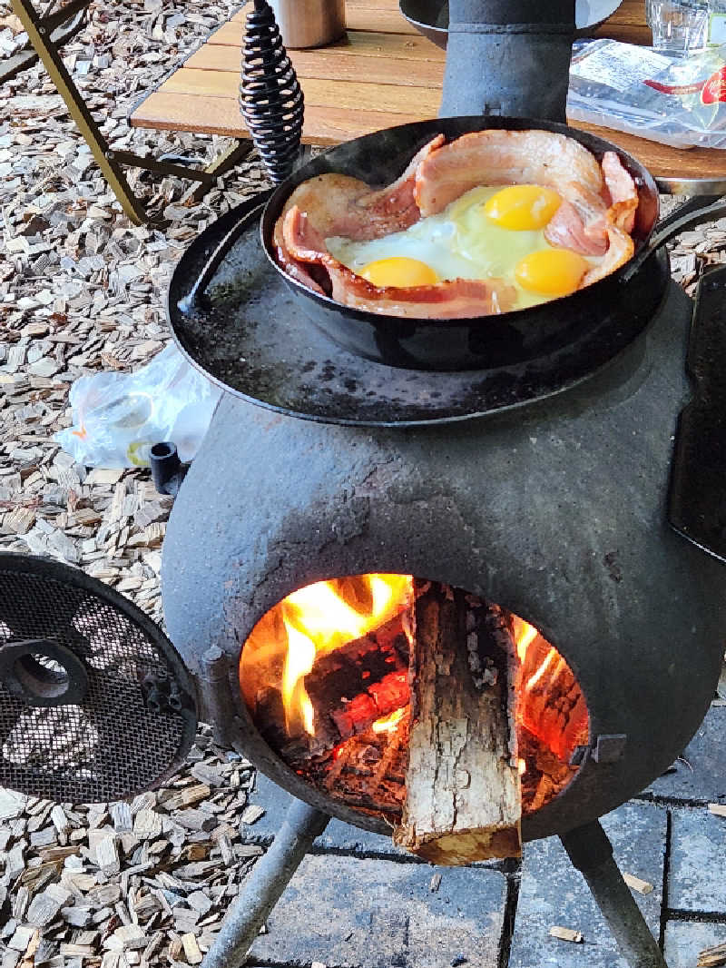 朝から火を起こして頑張りました😃