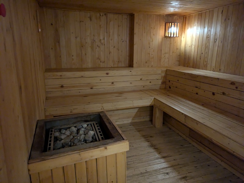 サウナ2つ。メディテーションサウナは100℃設定で湿度も高く激アツ。水風呂も2つあり。ととのった。