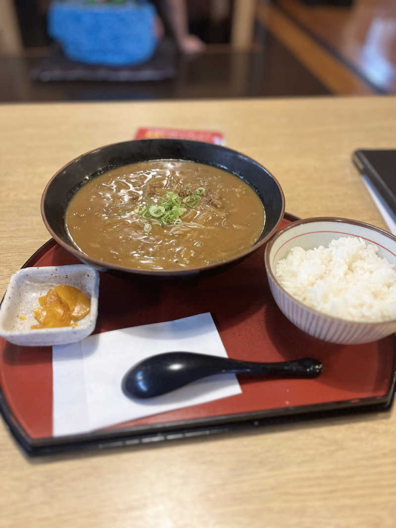 お出汁のきいた甘辛カレーそば 麺を食べきったあとはご飯を入れてカレー丼✨