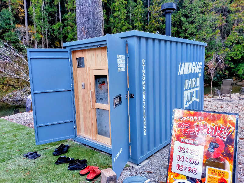 川を眼下に観ながらのコンテナサウナも、他の水風呂も勿論よく、サウナ漬けの一日。