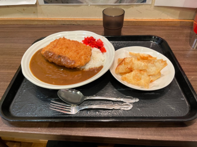 サウナ後にカツカレーと揚げワンタンを食う