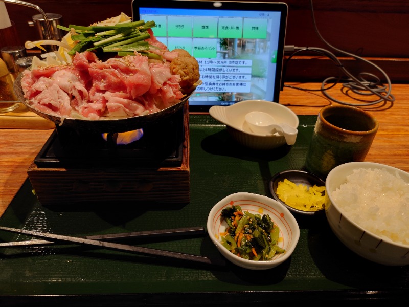 いつもの生ビールセットからはじまり、かつおのたたきとメインはお鍋❗今日はチーズde豚キムチ鍋をチョイス😉👍✨〆はうどんと迷いましたが鍋ご飯セットに🙌