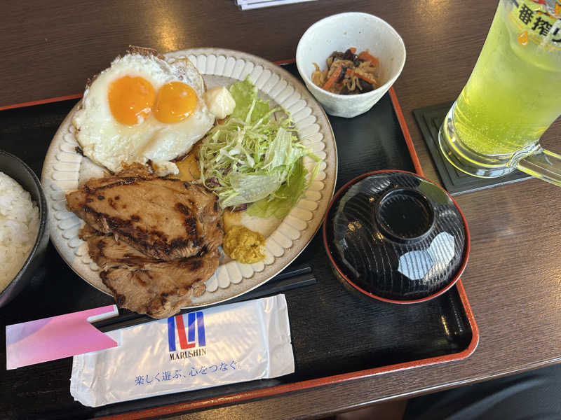 2セット目のサ室で「あと5分でアウフでーす」のご案内。せっかくだから、と待機して浴びますと、待機が長かったか、これはムリしちゃいかん、とアラームを感じて途中退出。んでその後の微風で晴れたベランダ外気浴ですっかり満ち足りてしまったので、3セットは求めず終了。たけポとチャーシューエッグ定食をいただいて12:10退出。
