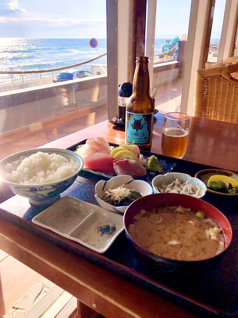 ここは内風呂も半露天も水風呂も、そして水風呂の前に置かれた掛け湯もモール泉!サウナはひとまず置いといて、輝く湘南の海を眺めながら暫しお湯に浸かる🌊✨