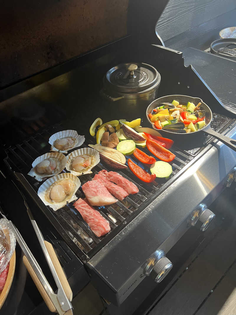 初のグランピング施設。 ピザ作りからのBBQ🍖 サウナは、かかおほうじ茶ロウリュウで 10×4 水風呂も程よく冷たく、少し雨があたる外気浴だったが 非現実的日常にいて、雨も最高に良いシチュエーションでした!