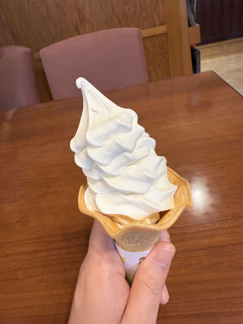 14時のスタッフロウリュウ及びサウナのオートロウリュウはお腹空いてた為パス😂食堂でご飯選んでるとなんと右手さんがソフトクリームを奢ってくださいました😳右手さんって本当に紳士な方だなぁ🥹熱った身体にソフトクリームが染み渡って最高でした😊