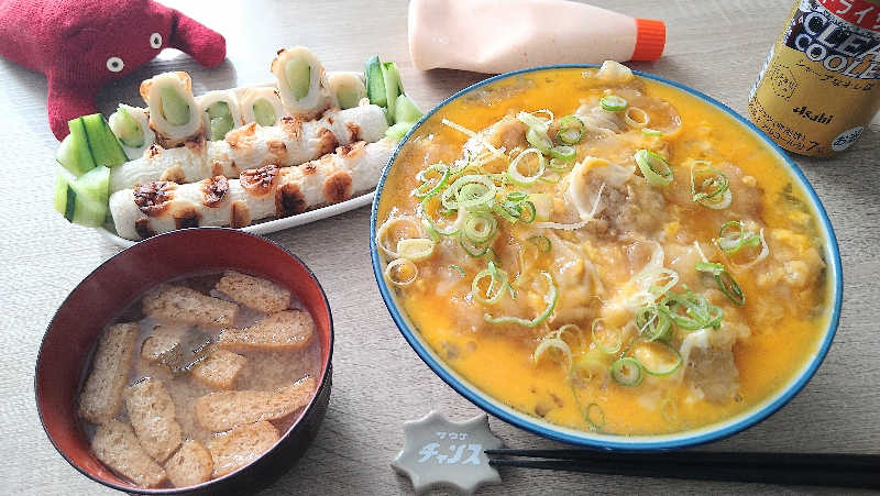 揚げ玉を入れ、たぬき卵とじは正解でした🙆♀️原価160円以内でめちゃくちゃ美味しかったこれはおそらく世界初では🤣