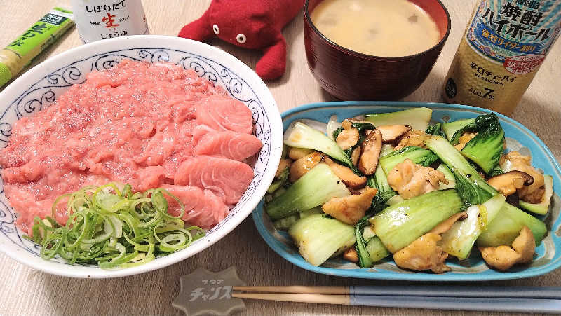 チラーさんとこ見たんですね👀 イチゴショートカラーは人気です🍓 私はカフェオレ系がいいなぁ~☕ まぐろ脳天は、売り場に置いてあっても見た目が悪いので皆さん買いませんが実は脂のりが大トロに匹敵する、比較的安価な私が1番好きな部位です🐟 骨はぼんじりの骨です! 捌いたら身と骨を塩少々入れた熱湯で茹でると、いい鶏スープになりますよ。 裏ごしし、今日は味覇という海鮮スープを足しました✌️エッヘンっ